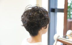 毛量の多い髪を短くカットしてデジタルパーマで雰囲気を変える