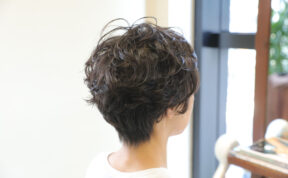 毛量の多い髪を短くカットしてデジタルパーマで雰囲気を変える