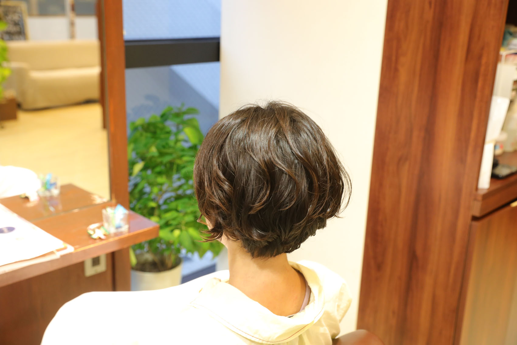| 担当者からのワンポイントアドバイス | ここ最近パーマスタイルがお気に入りになったお客様。 元々はとても直毛なのでパーマをかけるとボリュームがだしやすくなるのも魅力の一つですが、とても扱いやすくてスタイリングが簡単になる!そしてストレートな髪よりオシャレっぽく見えるメリットも大きいようですね |