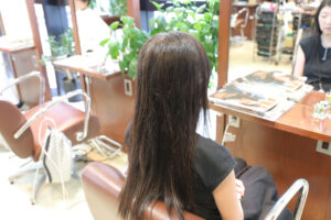 | 担当者からのワンポイントアドバイス | 髪が細くて傷みやすい髪質。このタイプの髪質は薬剤が強いと仕上がりが悪くなるので髪質に合わせた薬剤設定が重要となってきます。 |