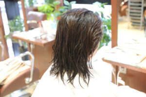 担当者からのワンポイントアドバイス いつも強く結んでいたので襟足部分に強烈な結びクセがあります。 ショートスタイルを考えているなら結び過ぎないようにしましょう。