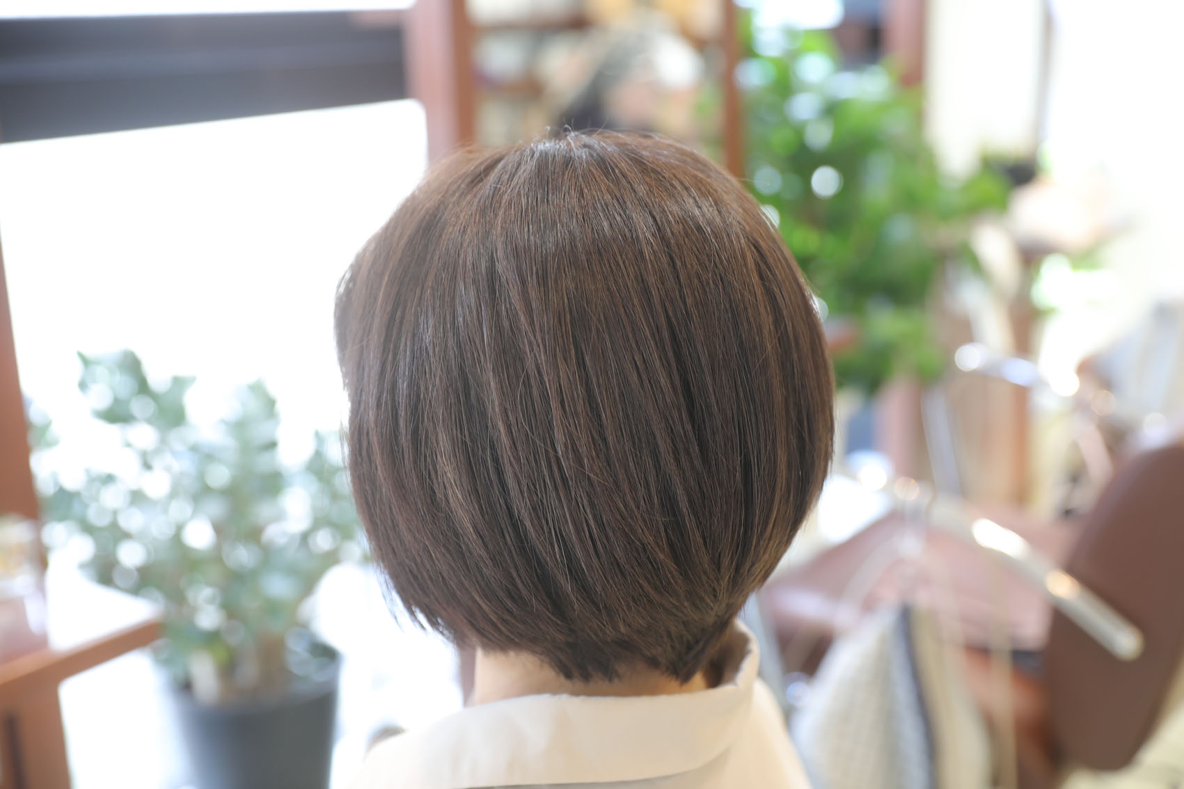 | 担当者からのワンポイントアドバイス | 縮毛矯正をしてあるので収まっている髪でした。 出来るだけ短くカットして髪の色味と明るさを変えて全く雰囲気がかわりました。 特に明るめのカラーリングから落ち着いたブラウン系の髪色になると印象が変わりますね |