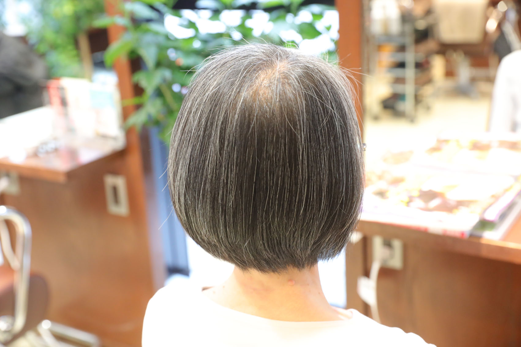 | 担当者からのワンポイントアドバイス | 毛量の少ない加齢毛だと髪質に合わせた施術が大切になります。 出来るだけ髪の負担を軽くしてあげると艶のある自然な仕上がりになりますよ。 |